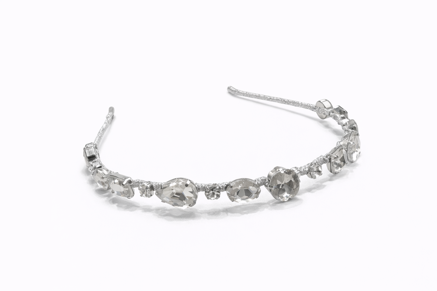 - Elegant headband adorned with multi-cut clear crystals for a radiant finish.
